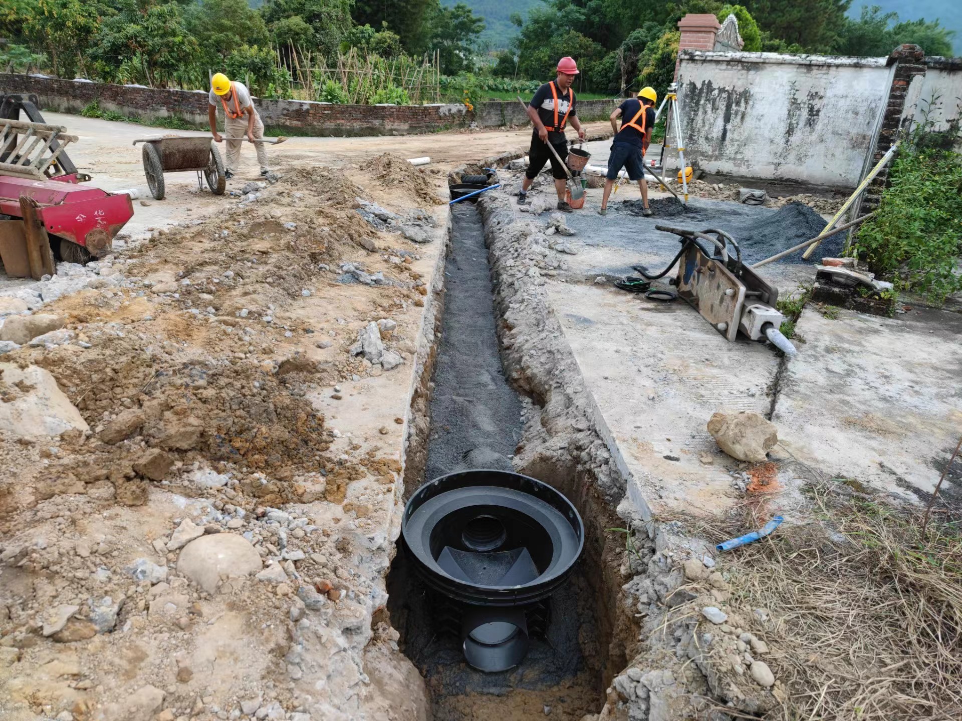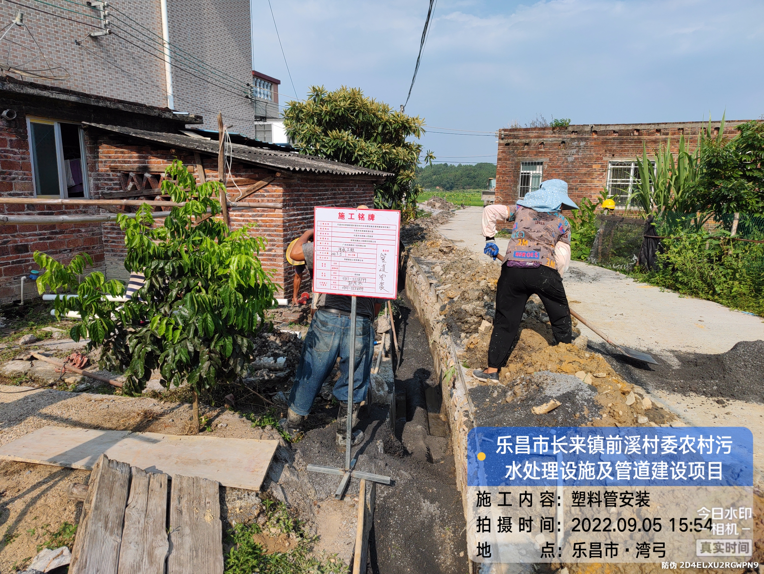 乐昌市长来镇前溪村委农村污水处理设施及管网建设项目施工:污水处理设施建设及配套雨污分流污水管网建设工程,其中DN300污水管总长3623米,DN200污水管总长4253米,DN100污水管总长9056米,共计处理水量为330m³,建设污水处理设施5座。
